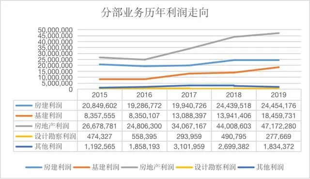 从营收上看,房建是营收最多的,因为毛利率较低,其获得的利润总额并不是最大的。