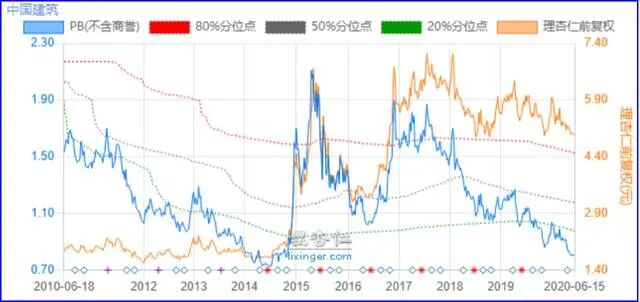 截止到2020年6月15日,建筑行业的滚动市盈率为7.84,而行业近一年的市盈率为8.7,这其中涵盖了国家整个宏观经济增长减慢对行业的影响,同时也反应了市场和资金面愈加严重的消极态度。