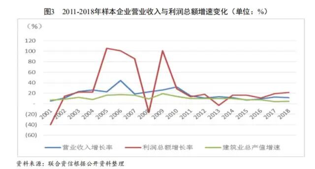 相比之下房建业务走势疲软,历年的利润额并没有太大的变化,结合上图样本企业营收和利润总额变化趋势来看,公司2015年-2018年期间的利润走向基本和图中所示一致。