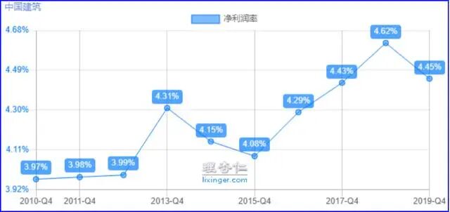 从盈利能力上看,中国建筑2019年营收实现18.39%的增长率,而公司2018年、2017年、2016年、2015年的增长率分别是13.78%、9.83%、8.99%、10.07%。不降反增的营收额说明公司的业务能力并没有遇到什么问题,反而有更加强劲的势头。
