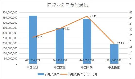 相对于行业其他企业来说,中国建筑的有息负债率并不是很高。
