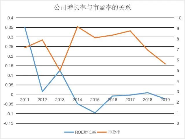 公司自2013年起ROE增长率就开始走向疲软,2014-2017年ROE出现下滑状态,随后市盈率也开始向下浮动。这也许也是公司市盈率降低的原因之一。