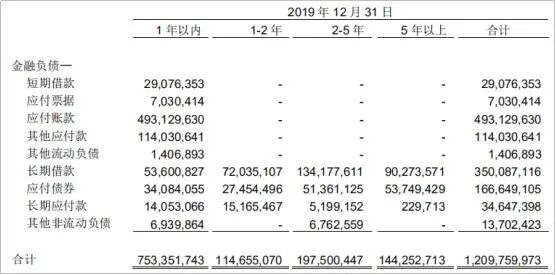 从这个角度来看,公司的偿债能力还是比较高的。但在附注中,公司披露1年内到期的金融负债高达753,351,743千元(其中占比最大的是应付账款,占比为65.46%),相当于公司2019年度53%的营业收入,如若公司资金周转不灵,此处也可能是一个极大的威胁。