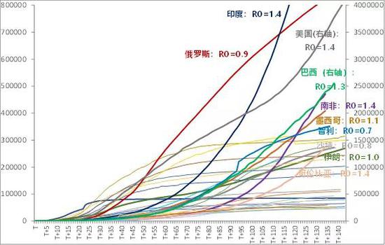 目前R0仍比较高的是印度、巴西等发展中国家,美国R0为1.4左右,其他欧美国家R0基本降到0.7以下。