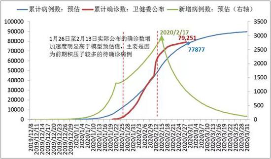 以原始的R0值5.38为基本参数,考虑到当时国内采取了前所未有的防控措施,参考2003年SARS疫情在严格防控后R0的下降幅度,当时给出了中性假设下的预测结果:每日新增病例拐点在2月17日左右出现,总患者数量将达到8.8万左右。事后看,这一预测结果与实际情形非常接近。