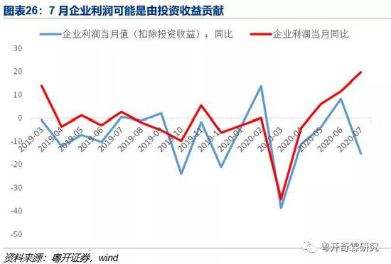 不过利润的好转可能有投资收益增加的因素,5月投资收益2057亿,6月3172亿,同比分为22.6%和22.5%。这一方面反映了流动性宽松的背景下,有部分企业通过债务融资-理财产品(或结构化存款)做空转套利,另一方面也反映出股票上涨对投资收益的增厚,7月股票市场涨得更好,预计投资收益对企业利润的增厚还要增加。