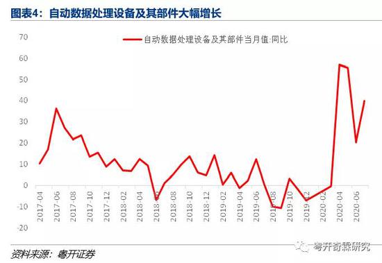 2)电子产品的出口恢复增长了,上个月掉下来一些,这个月增速又反弹上去了,同比高增39.76%,可见,在疫情扩散阶段,线上办公和远程互联的需求持续高增长应该是常态化了。