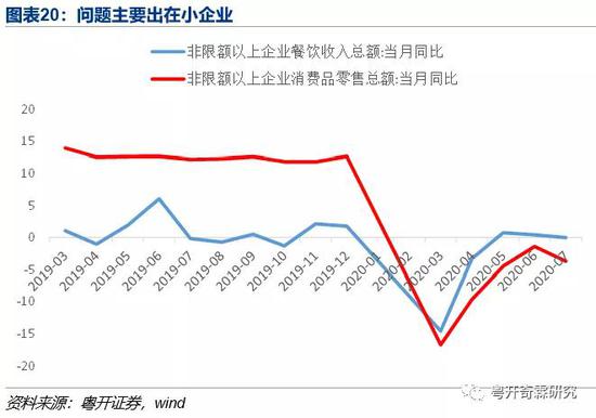 在疫情冲击下,经济总需求的恢复传导到小微企业和制造业的时滞和效果可能就更差了。从经验来看,中国疫情控制已经很有成效了,但消费和零售到现在,也没有明显恢复,相比于工业增加值增速已经恢复到去年均衡水平,社会消费零售总额同比还仅为-1.8%的增长,和去年7%-8.5%的增长中枢还差很远。