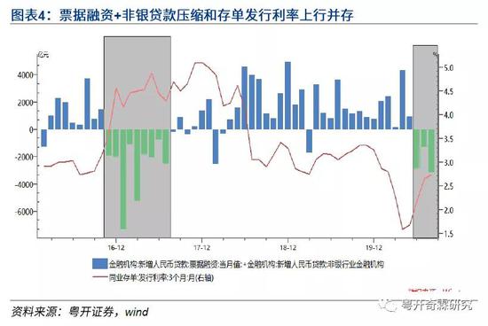 从图表4来看,同业存单发行价格上行+非银贷款与票据融资负增长这个组合在2016年末-2017年也出现过。