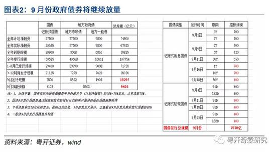 从我们的预测来看,9月政府债券的发行规模可能超过1.5万亿,净融资额在9000-10000亿左右,规模依然不小,仅次于5月和8月,会继续对9月份的社融构成支撑。