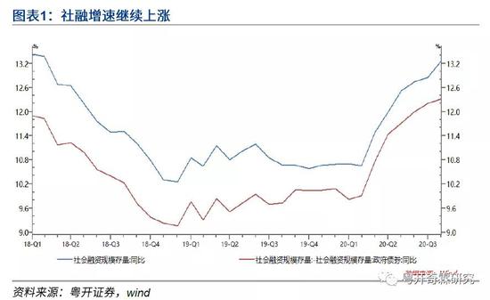 在较高的社融新增量带动下,社融存量增速上涨0.4%达到13.3%的年内高点。