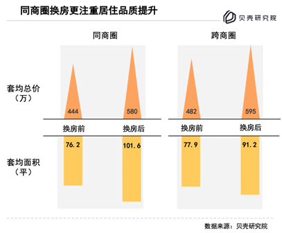 但是,并非所有人都是“旧换新、小换大”,此次贝壳研究也注意到了在改善居住品质、教育资源、通勤等需求驱动下的换房“逆行者”。