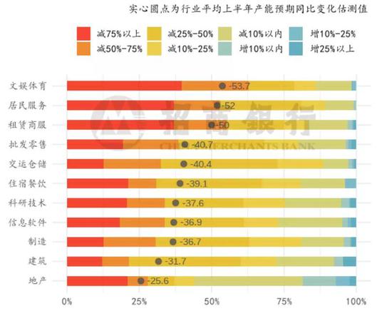 从行业分布看,供给端受海外影响较大的行业是文娱体育(-53.7%)、居民服务(-52.0%)和租赁商服(-50.0%)(括号中为该行业纯进口依赖型企业,上半年产能/业务增速受海外供给的影响)。