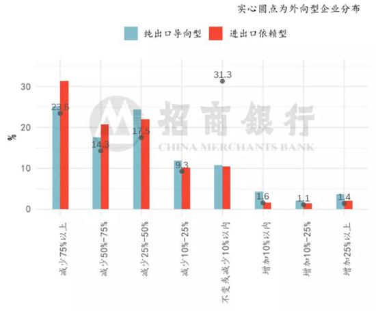 分类型看,上半年营收预期(括号中数字为预期上半年营收同比增速的估测值):纯出口导向型企业(-42.4%)>纯进口依赖型企业(-47.3%)>进出口依赖型企业(-49.9%)。