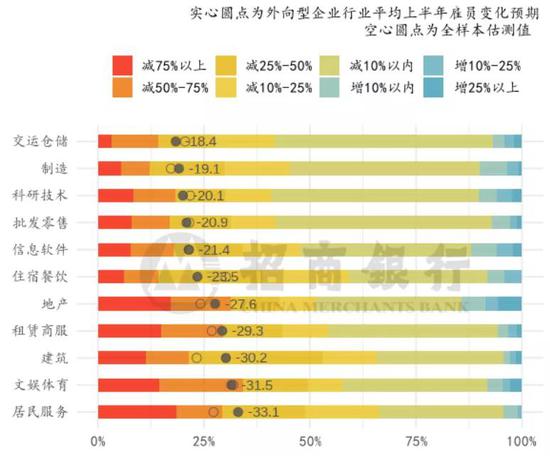图 33:各行业的外向型企业雇员数变动预期分布