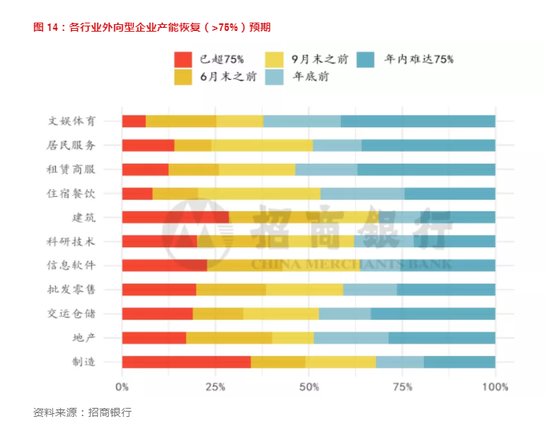 图 14:各行业外向型企业产能恢复(>75%)预期