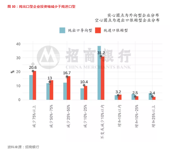 图 30:纯出口型企业投资缩减少于纯进口型