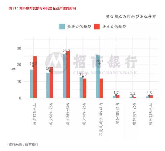 图 21:海外供给受限对外向型企业产能的影响