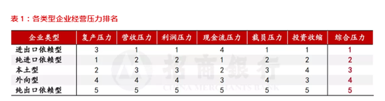 表 1:各类型企业经营压力排名
